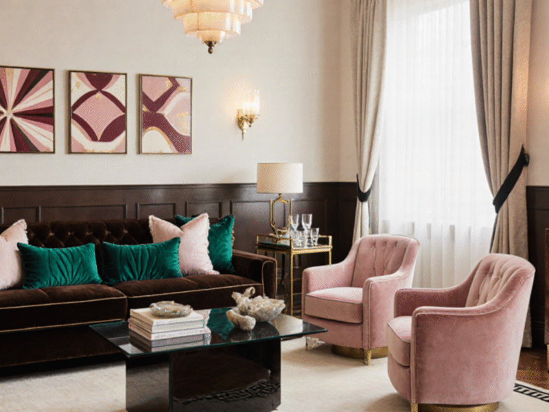 Want a subtle shift through the seasons? Swap chocolate-brown velvet cushions for caramel shades, or swap green linen drapes for clay terracotta—easy and budget-friendly.